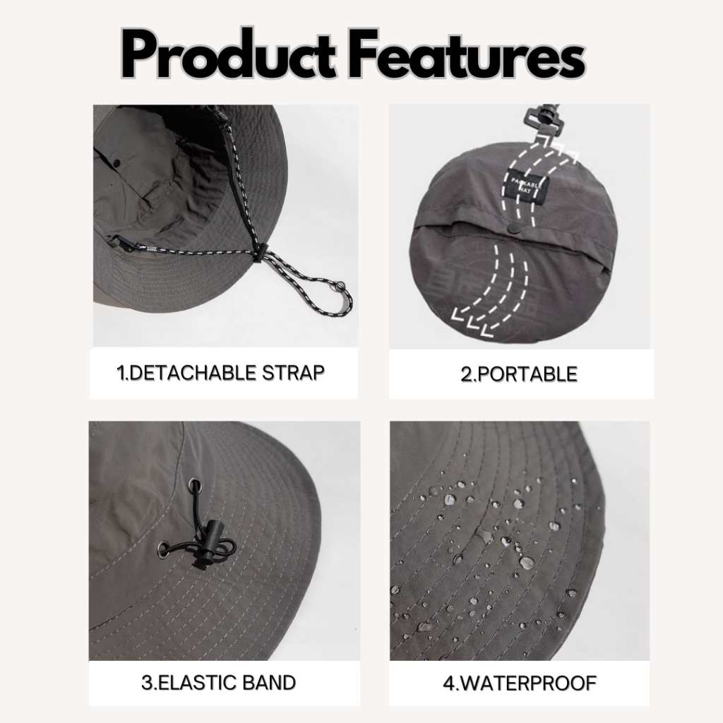 Material Quality:very good Colour:black. Very light weight. Compact. Easy to fold. Quick dry after wash. Good for travelling. Did provide some shade as the circumstance of the hat is smaller. The string attached is very useful..prevent the hat fr flying off when wind is strong