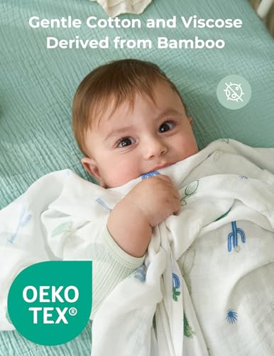 Momcozy Muslin Best Wishes Swaddle Blankets, Ultra Soft Neutral Registry Essentials, Jungle Trails & Wild Pals, Breathable Large 47'' x 47'' Newborn Boys Girls Receiving Blanket