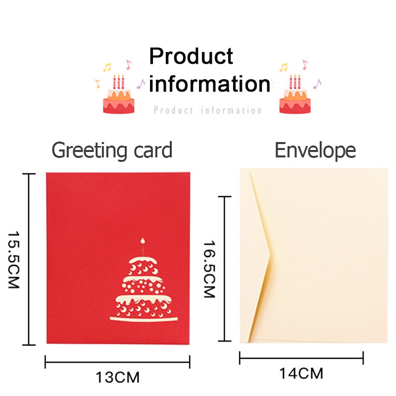 Music Birthday Card Pop Up 3D Cake Musical Light Greeting Card (Include Music Light And No Music Light) Creative Birthday Party Gift Message Card