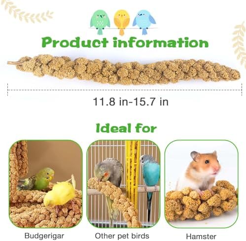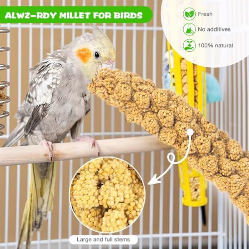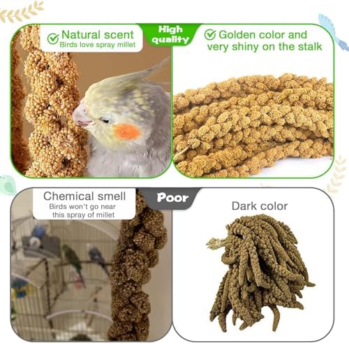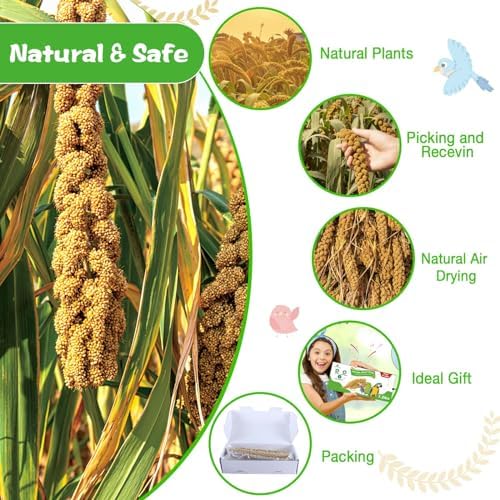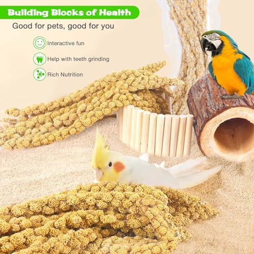 Millet for Birds 1.2LB, Natural Sun-Dried Spray Seed No Stems Only Edible Tops for Parakeet, Budgies, Finches, Cockatiels, Parrots, Lovebird, Hamster and Other Pets Treat