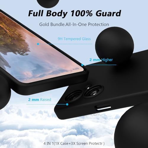 Sponsored Ad - for OnePlus Nord N30 5G Phone Case with 3 Pack Tempered Glass Screen Protectors, Soft Liquid Silicone TPU with Microfiber Liner Full-Body Protective Cover Case for OnePlus Nord N30, Bla