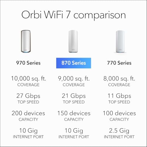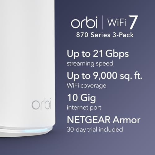 Sponsored Ad - Orbi 870 Series Tri-Band WiFi 7 Mesh System (RBE873) - Router + 2 Satellite Extenders, Security Features, Up to 21 Gbps, Covers Up to 9,000 Sq. Ft., 150 Devices, 10 Gig Internet Port, B