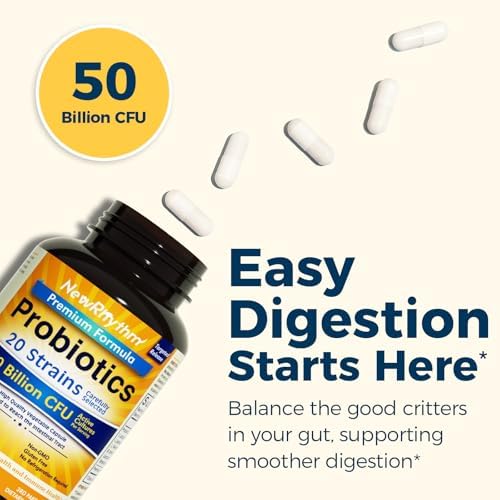 NewRhythm Probiotics 50 Billion CFU 20 Strains, 60 Veggie Capsules, Targeted Release Technology, Stomach Acid Resistant, No Need for Refrigeration, Non-GMO, Gluten Free