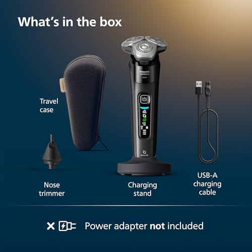 Sponsored Ad - Philips Norelco Shaver i9000, Wet & Dry Electric Shaver, Ink Black, SenseIQ Technology, Triple Lift & Cut System, 360 Rotating Dual SteelPrecision Precision Blades, Nose Trimmer, Model
