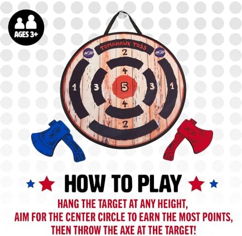 NSG Tomahawk Toss - Foam Axe Throwing Game for Kids - Two Lightweight Axes with Large Easy Stick Target, Wood/Black/red/Blue (JS7000)