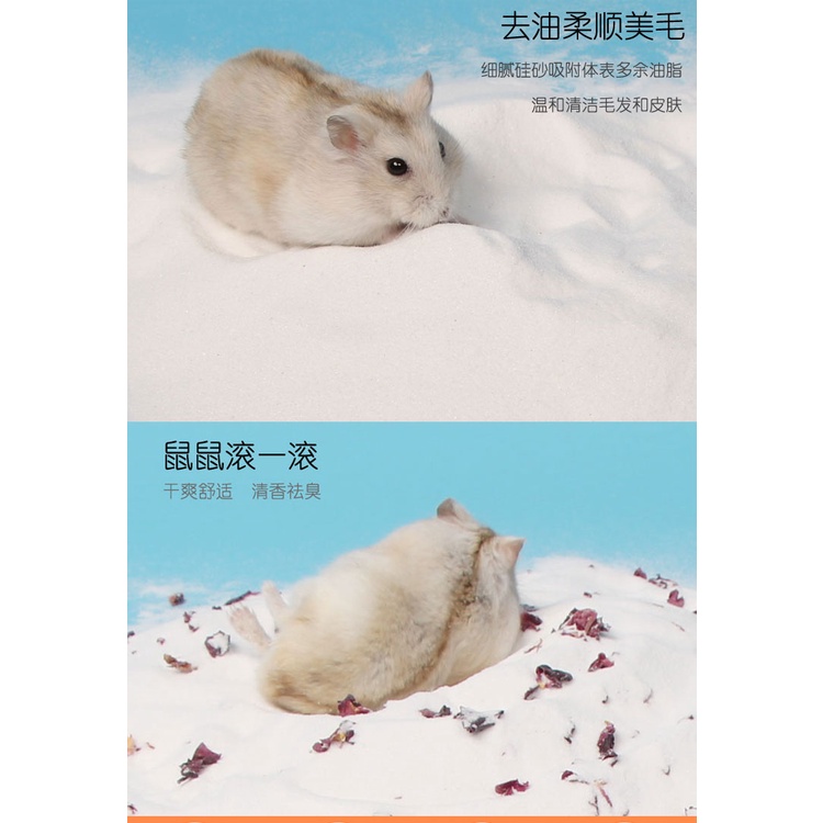 Performance:not yet use Suitability:all hamster Quality:sands on pure white with some shinny things First time purchase, self collection at grocery shop nearby my home. Not too sure the quality of sands yet, the packaging looks decent, product of China. I hope they won’t add in harmful chemicals to that sands, pet lovers like me always priority the health of animals!