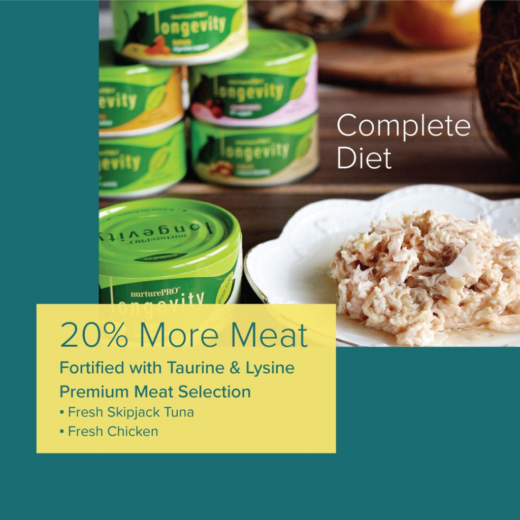 NurturePRO Longevity Chicken & Skipjack Tuna Wet Cat Food (80g x 24) | Complete Meal, Meal Topper, Meow, Carton Deal