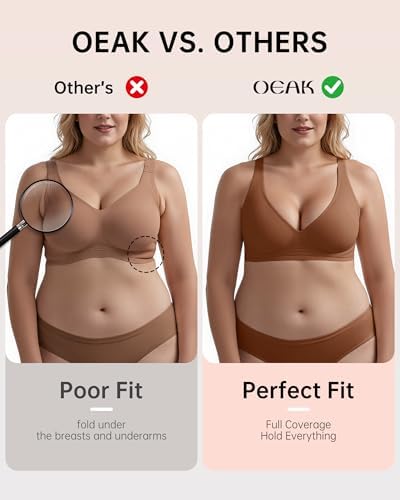OEAK Womens Deep V Bras Wireless Comfortable Bra Supportive No Underwire Bras Tshirt Push Up Bralettes Plunge Seamless Bra