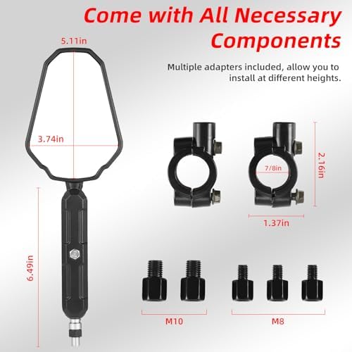 Sponsored Ad - Adventure Motorcycle Mirrors, Adjustable Motorcycle Side Mirrors with 7/8" Handlebar Mount 8mm 10mm Screws Fit for Scooter Moped Dirt Bike Quad