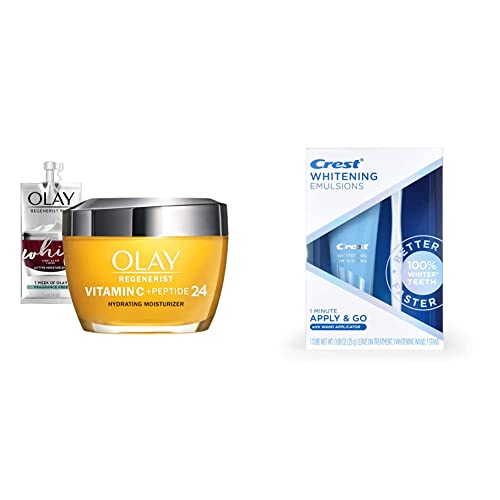Regenerist Vitamin C + Peptide 24 Brightening Face Moisturizer + Travel Size Whip Face Moisturizer and Crest Whitening Emulsions Leave-on Teeth Whitening Kit with Applicator (0.88 Oz)