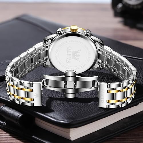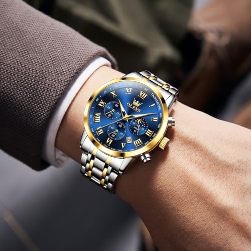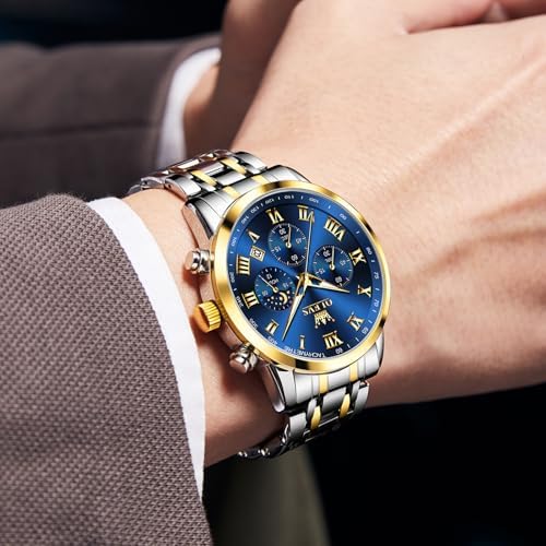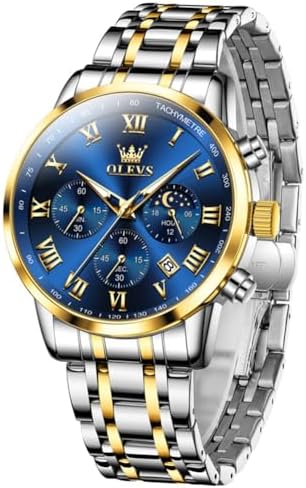 Mens Stainless Steel Chronograph Watch, Big Face Roman Numerals Date Analog Quartz Dress Watches for Men, Fashion Multifunctional Waterproof Luminous Hands Men's Wristwatch