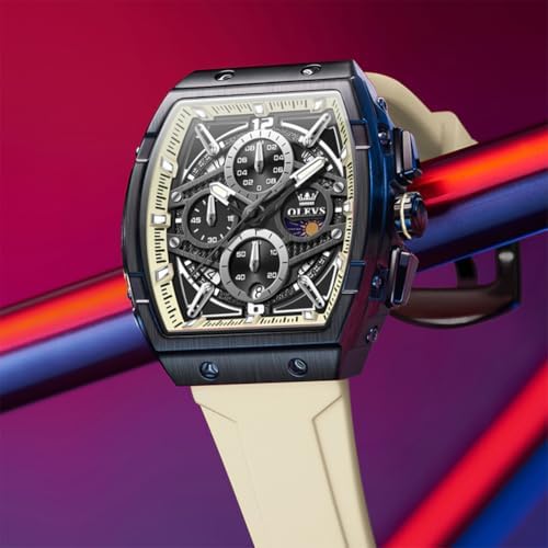 Sponsored Ad - Men Watches Business Dress Chronograph Big Square Quartz Analog Male Watch Silicone Strap Waterproof Date Gift Mens Wrsit Watch Silver