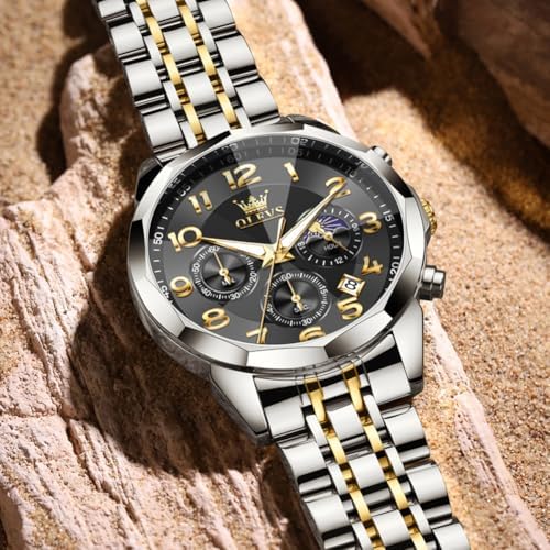 Sponsored Ad - Mens Watches Large Face Watch for Men Casual Stainless Steel Diamond Analog Quartz Waterproof Date Dress Men's Wrist Watch…