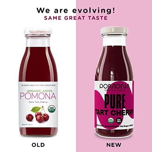 Pomona Organic Pure Tart Cherry Juice, Cold Pressed, Non-GMO, No Sugar Added, Not from Concentrate, Gluten Free, Kosher Certified, Preservative Free,8.4 Fl Oz (Pack of 12)