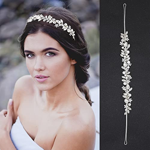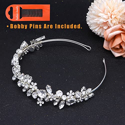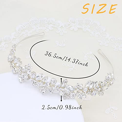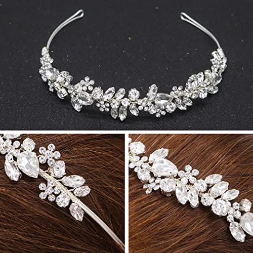 Oriamour Crystal Wedding Headbands Handmade Bridal Headpieces For Bride Flower Girl Wedding Hair Accessories For Bridesmaids Prom Party (Silver)