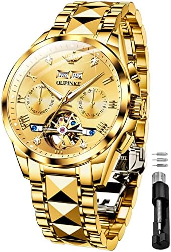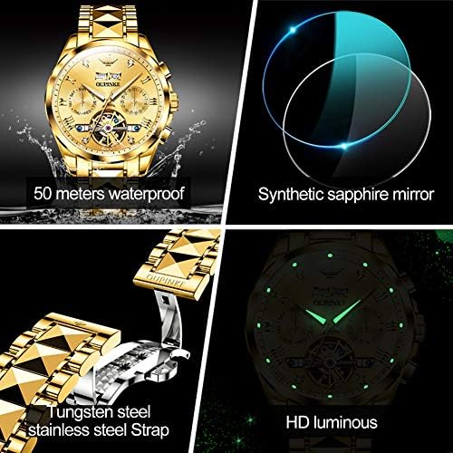 Sponsored Ad - Gold Men Automatic Mechanical Wrist Watches Luxury Dress Tungsten Steel Luminous Waterproof Sapphire Diamond Calendar Best Gifts Men