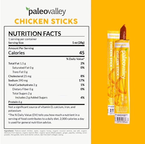 Sponsored Ad - Paleovalley Pasture-Raised Chicken Sticks – 10 Pack – 7g Protein per Stick – Keto-Friendly, Paleo, Gluten-Free, Nitrate-Free – On-the-Go Snack (10 Pack, Teriyaki)