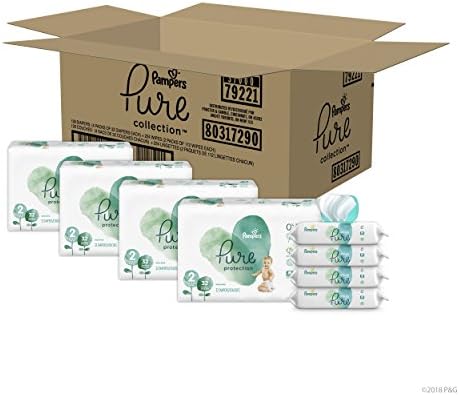 Pure Disposable Baby Diapers, Hypoallergenic and Fragrance Free Protection Size 2, 128 Ct. with Aqua Pure 4X Pop-Top Sensitive Water Baby Wipes, 224 Ct.
