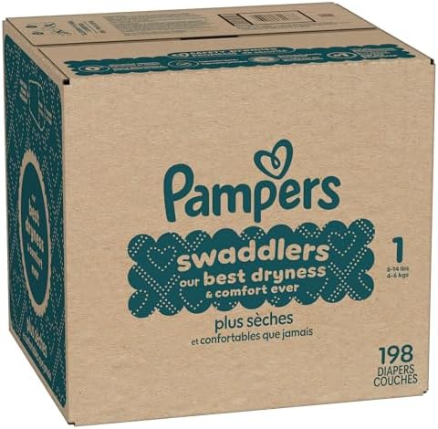 Pampers Swaddlers Diapers - Size 1, One Month Supply (198 Count), Ultra Soft Disposable Baby Diapers