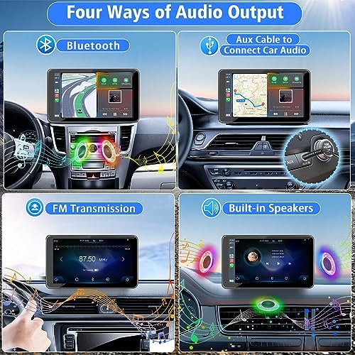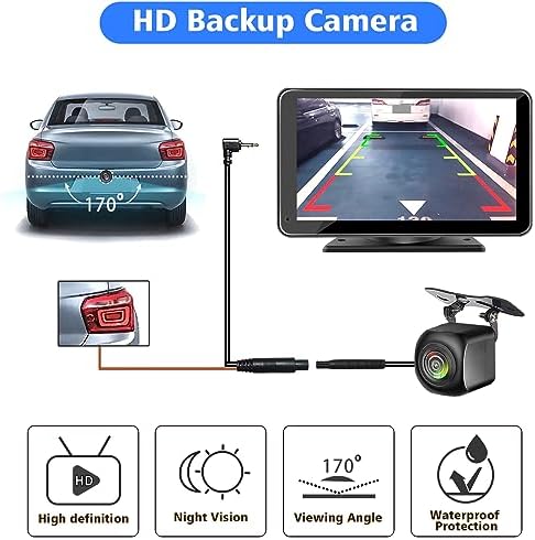 Portable Wireless with Apple CarPlay and Android Auto Screen for Car, 7" HD Touch Screen Car Stereo with Mirror Link, Bluetooth 5.2, Backup Camera, AUX,FM Transmitter for All Vehicle