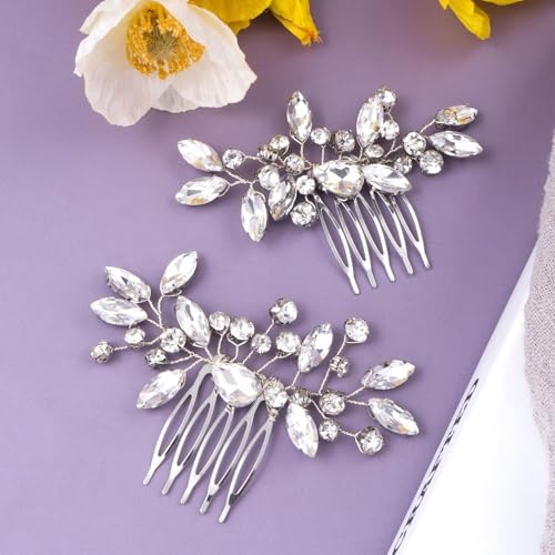 Sponsored Ad - 2 Pcs Bridal Hair Comb Rhinestone Hair Comb Silver Flower Bridal Headpieces Hair Combs For Women Accessories Bridal Hair Accessories Fancy Wedding For Bride Bridesmaids Women Girl