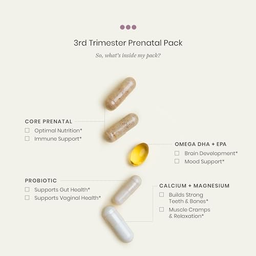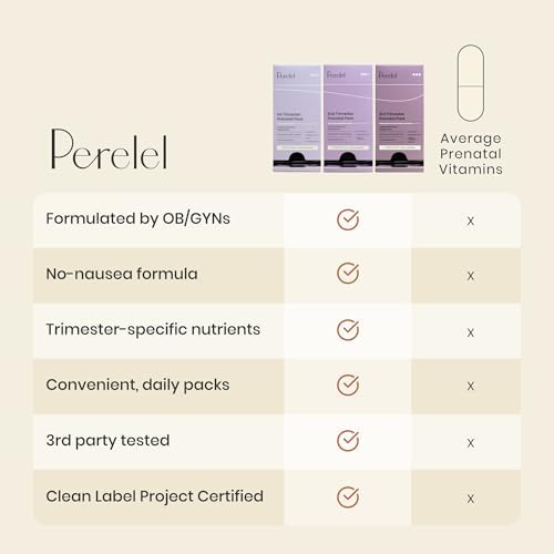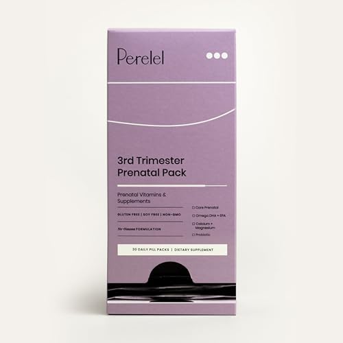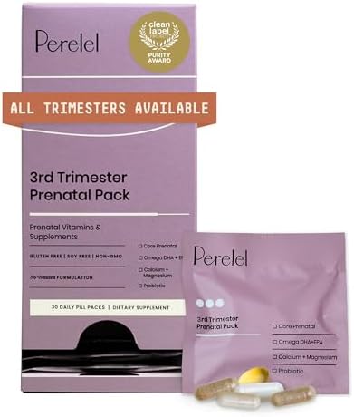 Sponsored Ad - Perelel 3rd Trimester Prenatal Pack, Multivitamin with Magnesium, Omega 3, Probiotics & Calcium, Nutritional Support for Third Trimester Wellness, Soy & Gluten Free, Non GMO, 30 Daily P