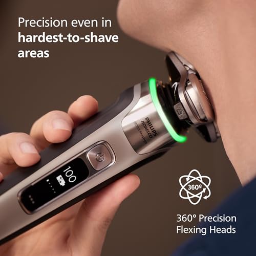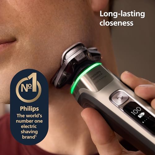 Sponsored Ad - Philips Norelco Shaver i9000 Prestige - Wet & Dry Electric Shaver, Gold Oyster, Sense IQ Technology, Triple Lift & Cut System, 360 Rotating Dual SteelPrecision Blades, Quick Clean Pod,