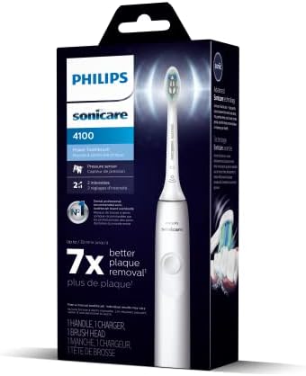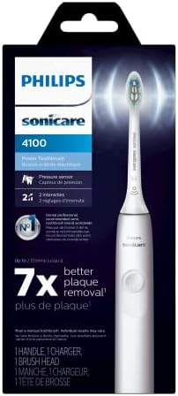 4100 Rechargeable Electric Toothbrush, with Pressure Sensor, 2 Intensity Settings, SmarTimer and QuadPacer, 14-Day Battery Life, White, Model HX3681/23