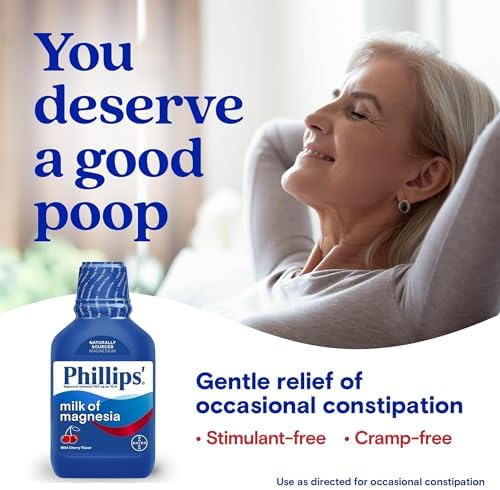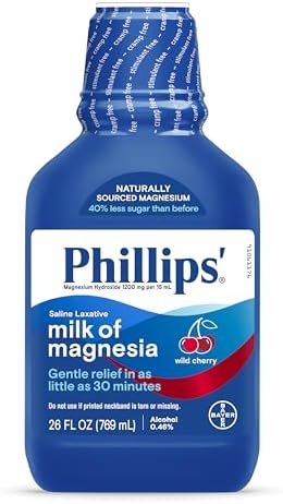 Phillips’ Milk of Magnesia Liquid Laxative, Wild Cherry Flavor, Stimulant Free, Cramp Free Relief of Occasional Constipation*, Effective in 30 minutes - 6 hours, #1 Milk of Magnesia Brand, 26 oz