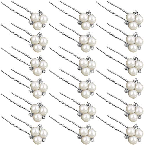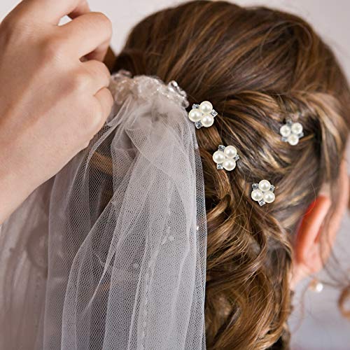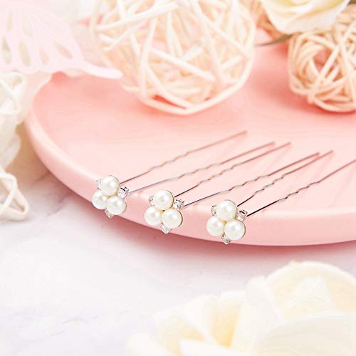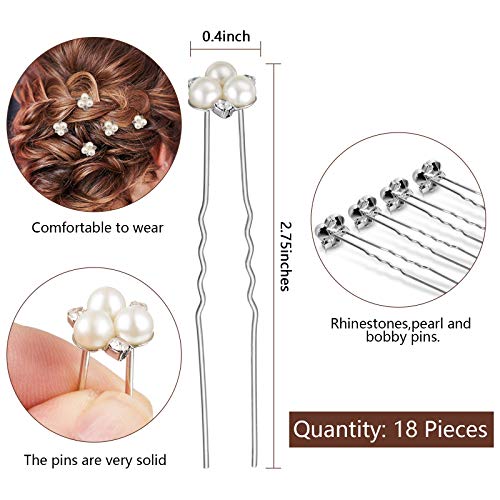WILLBOND 18 Pcs Pearl Hair Pins Bridal Wedding Hair Accessories Crystal Bobby Pin for Brides Bridesmaids Flower Women Girls(Silver)