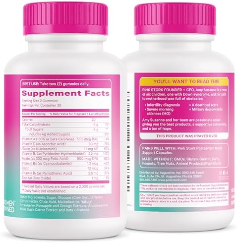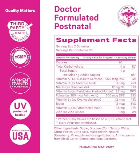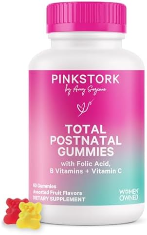 Sponsored Ad - Pink Stork Total Postnatal Vitamin Gummies - Multivitamin for Postpartum Recovery and Lactation Support - Folic Acid, B6, & Vitamin C - Breastfeeding Essentials - 60 Gummy Vitamins
