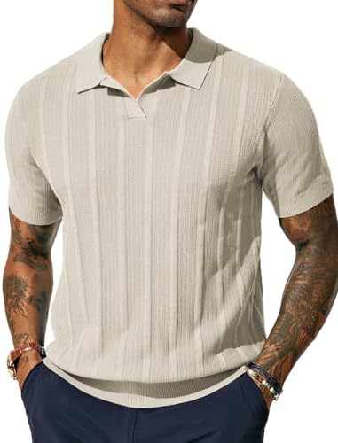 Mens Polo Shirts Regular Fit Textured V-Neck Knit Golf Polos