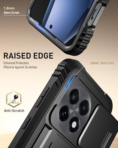 Revolution Case for OnePlus 13R 5G, [Slide Camera Cover], Built-in Screen Protector [Work with Fingerprint ID], [2 Front Frame] Full Body Rugged Shockproof Case with Kickstand, Black