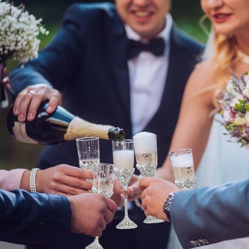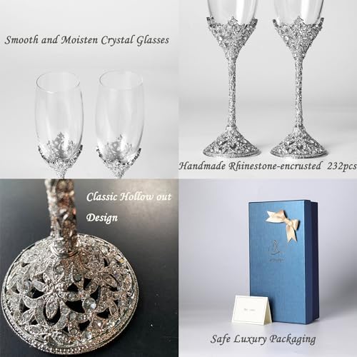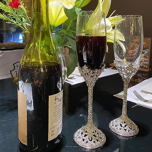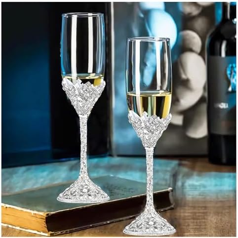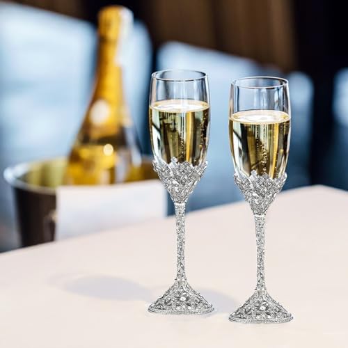 Sponsored Ad - Wedding Champagne Flutes Set of 2 - Metal Base With Crystal Stones, Glasses for Bride and Groom, Engagement Gifts, Party, Anniversary, Christmas - 7oz
