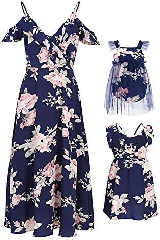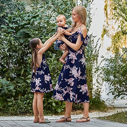 PopReal Mommy and Me Dresses Floral Print Cold Shoulder Ruffle Backless Strap Romper Beach Midi Dress Summer