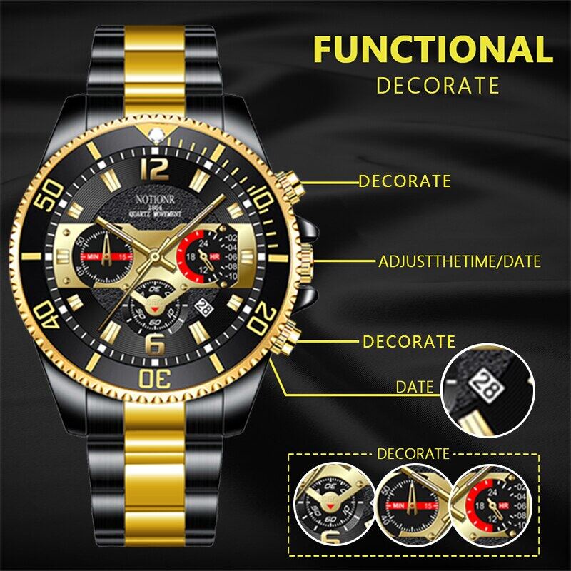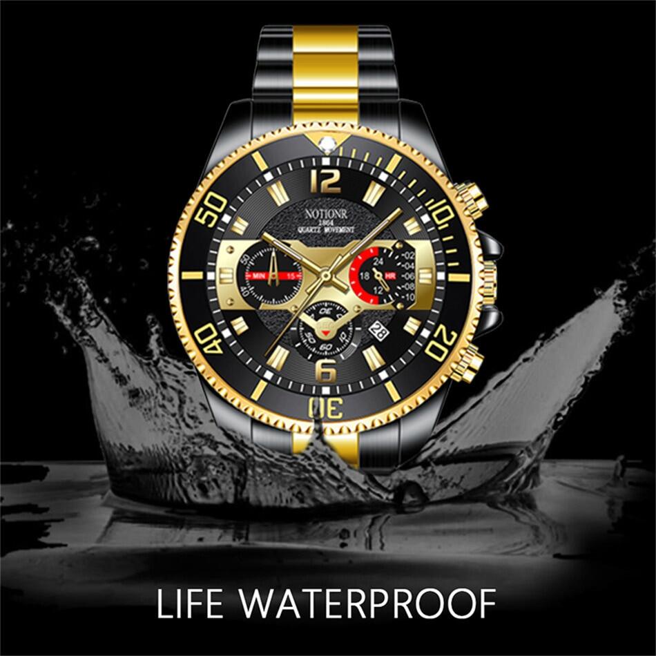 Matches the picture: Matches Quality: high Buy Brand Poshi Men's Stainless Steel Automatic Waterproof Watch⌚️For family use, the appearance is beautiful, the black gold strap has a protective film to avoid scratches.