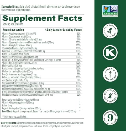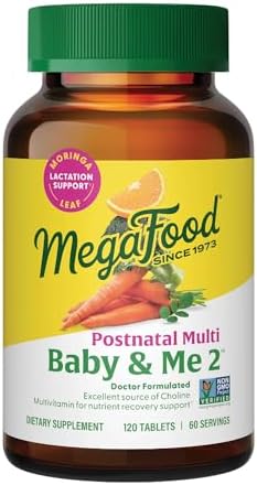 MegaFood Baby & Me 2 Postnatal Vitamins for Women Breastfeeding with Folate (Folic Acid Natural Form), Choline, Iodine, Vitamin D, Moringa Leaf and More - 120 Tabs (60 Servings)