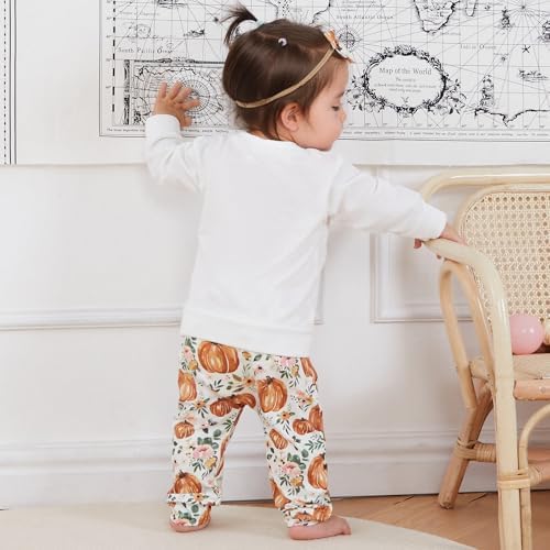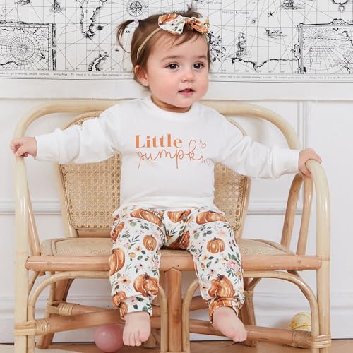 Baby Girl Winter Clothes Pumpkin Crewneck Sweatshirts Flower Sweatpants Headband Toddler Fall Halloween Outfits