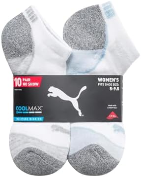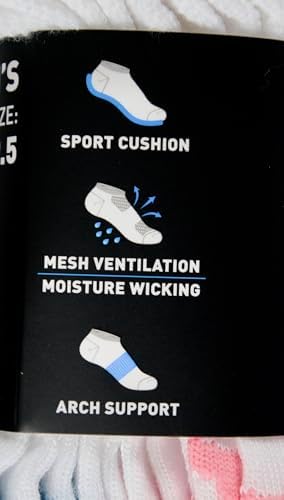 Women's Sports No-Show Socks, 5-9.5 Shoe Size, White, 10 Pairs