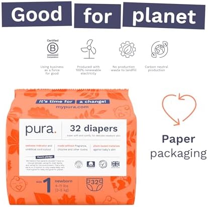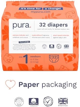 Hypoallergenic Diapers, Size 1 (4-11lbs), Newborn, Totally Chlorine Free, Wetness Indicator, Suitable for Sensitive Skin, Soft Organic Cotton Comfort, Overnight, 3 Packs of 32 (96 Baby Diapers)