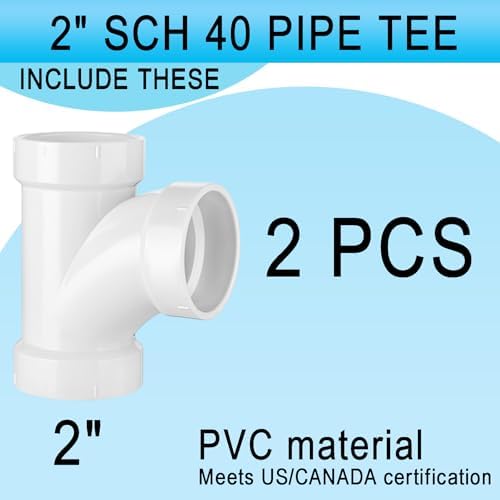 Sponsored Ad - (2" PVC Tee, 2 Pack) Asterbacks 2 inch PVC Tee T Schedule 40 White Pipe Fittings Connectors PPT-753(2 PCS)