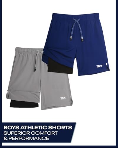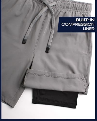 Boys Athletic Shorts 2 Pack – 2-in-1 Boys Basketball Shorts with Compression Liner – Quick Dry Running Shorts