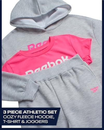 Girls' Activewear Set - 3 Piece Stylish Graphic T-Shirt Fleece Pullover Hoodie and Jogger Sweatpants Size: 4-12 Size
