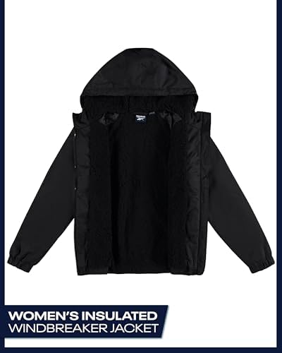 Womens Windbreaker Jacket - Water and Wind Resistant Midweight Cozy Sherpa Fleece Insulated Softshell Jacket for Women