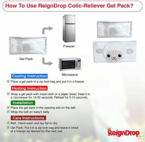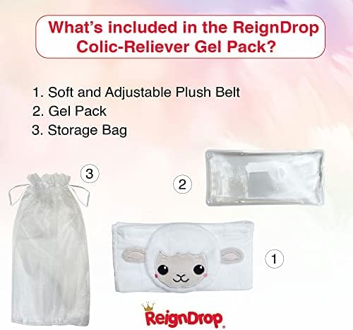 ReignDrop Colic Relief for Newborns – Gas Relief Set with Belly Band, Gel Pack, Storage Bag – Soothing Calming Warm or Cold Compression Baby Belly Belt (Lamb Gel Pack)