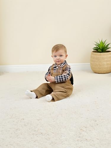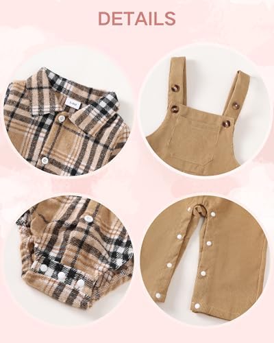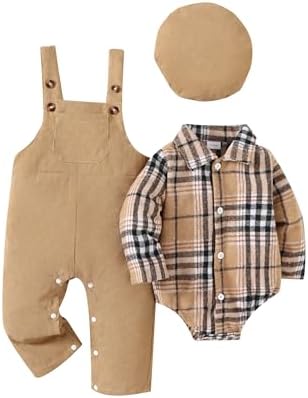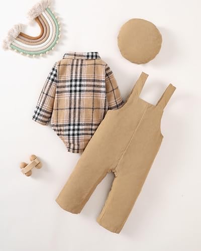 Baby Boy Clothes Flannel Plaid Bodysuit+Corduroy Overalls+Beret Hat 3Pcs Fall Winter Outfits for 3-24 Months Boys