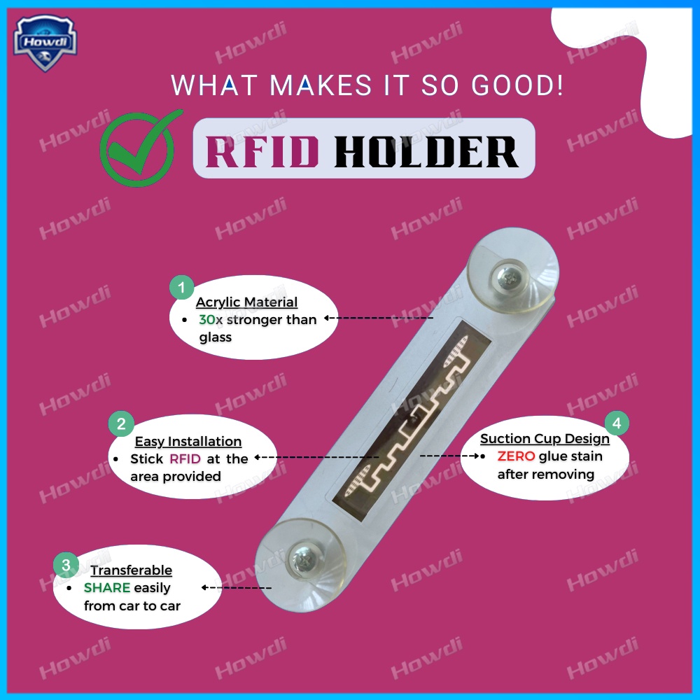 The RFID Tag Holder with Suction is the ultimate solution for VEP RFID toll usage in Malaysia. Say goodbye to the hassle of permanently sticking your RFID tag to your windshield. With this holder, you can easily attach and detach your VEP RFID tag thanks to its strong suction cup, which securely adheres to any smooth surface, like your car's windshield. It allows for quick transfers between vehicles without compromising on the tag's functionality. The holder ensures your RFID tag is perfectly positioned for flawless toll readings, making your journeys smoother and more convenient. Ideal for those who want flexibility without the commitment!