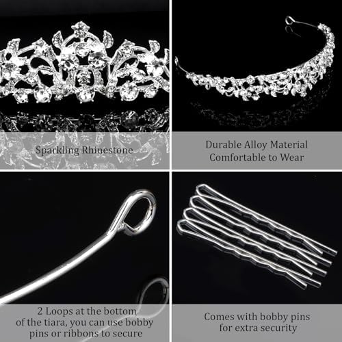 Silver Crown Tiara for Women Girls Rhinestone Queen Princess Tiara Quinceanera Crown Bridal Crystal Tiaras Headband Bride Crowns Hair Accessories for Wedding Homecoming Crowns for Prom Birthday Pagean