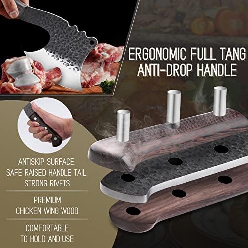 ROCOCO Meat Bone Cleaver Knife for Meat Cutting Handmade Heavy Duty Butcher Axes Hand Forged Full Tang Chopper for Kitchen Outdoor BBQ Chirstmas Mother Father Gifts Idea Men Black