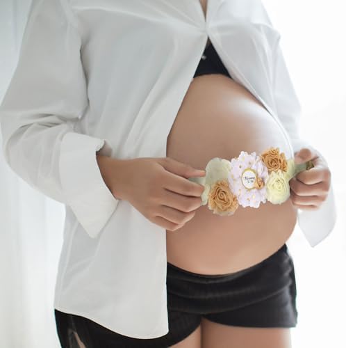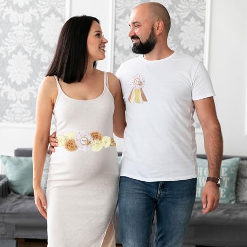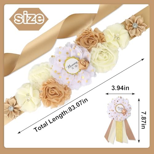 Rose Gold Maternity Sash Corsage Set – White Champagne Floral Belly Band with Mommy to Be Daddy to Be Pins for Baby Shower Party Pregnancy Decorations Photo Props